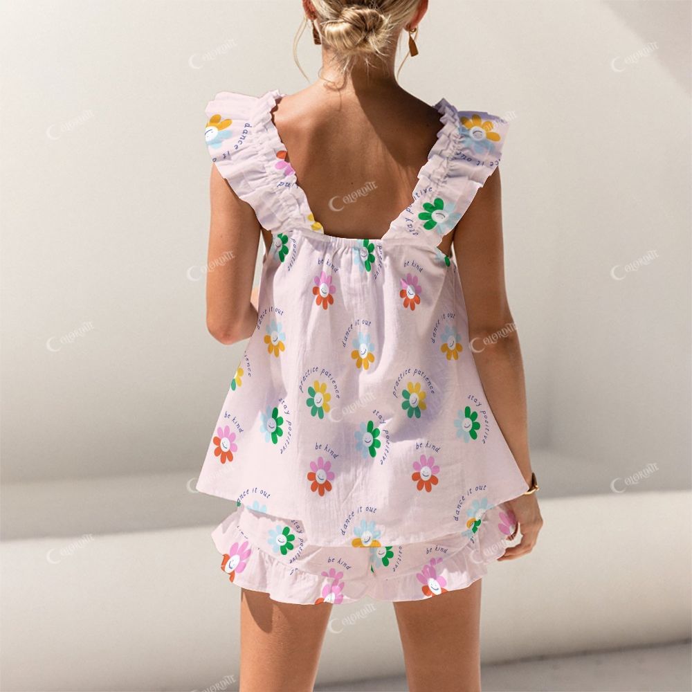 Colordate Smiling Face Flower Print Short Tank Top Shorts Pajama Set