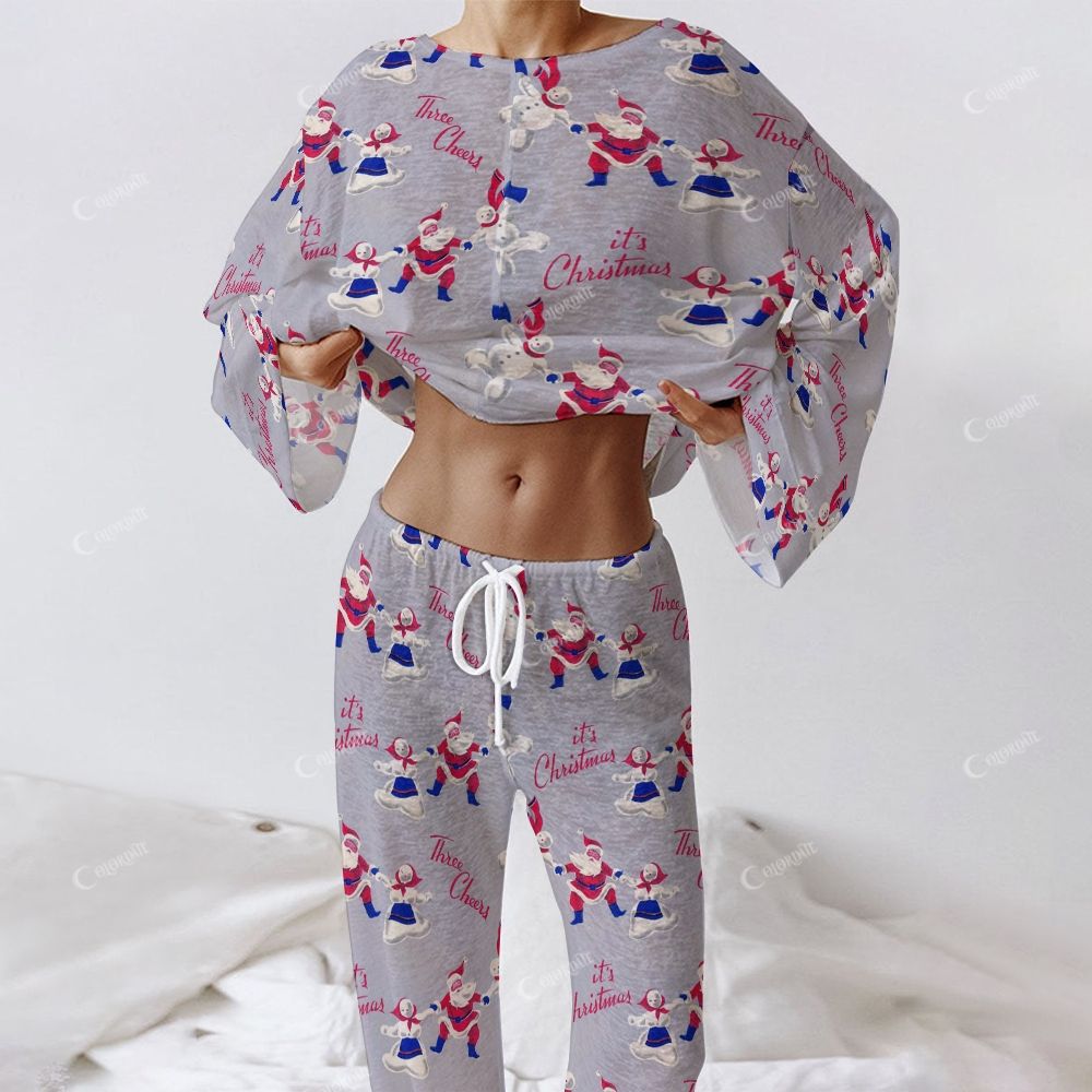 Colordate Women's Dancing Santa Claus Print Long Sleeve Cotton Homewear Set