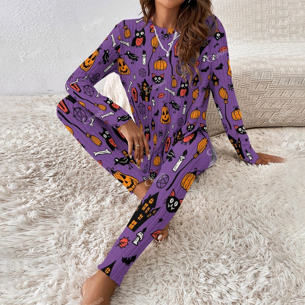 Colordate Women's Halloween Pattern Print Long Sleeve Suit