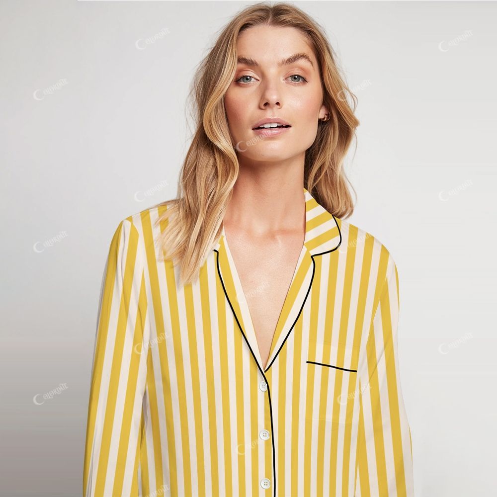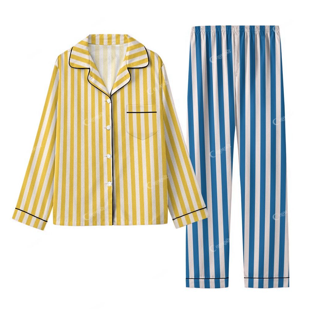Colordate Women's Stripes Print Home Long Sleeve Suit