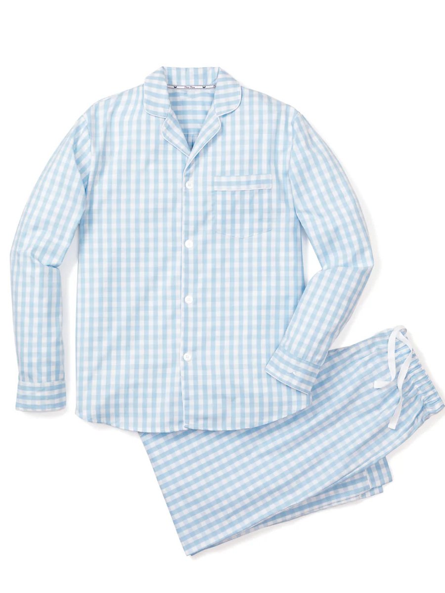 Men's Twill Pajama Set in Light Blue Gingham