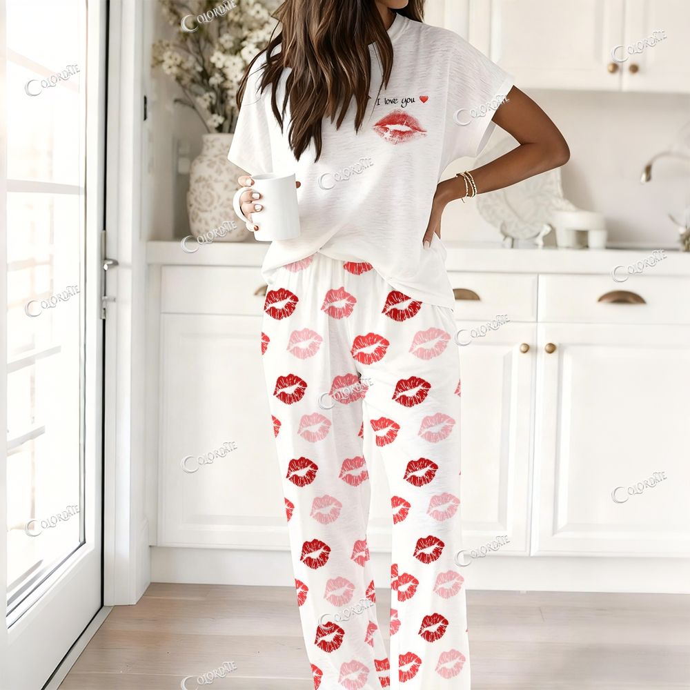 Red Lipstick Print Ladies Lounge Suit