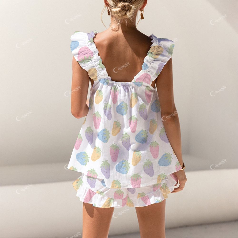 Short Tank Colorful Strawberries Top Shorts Pajama Set