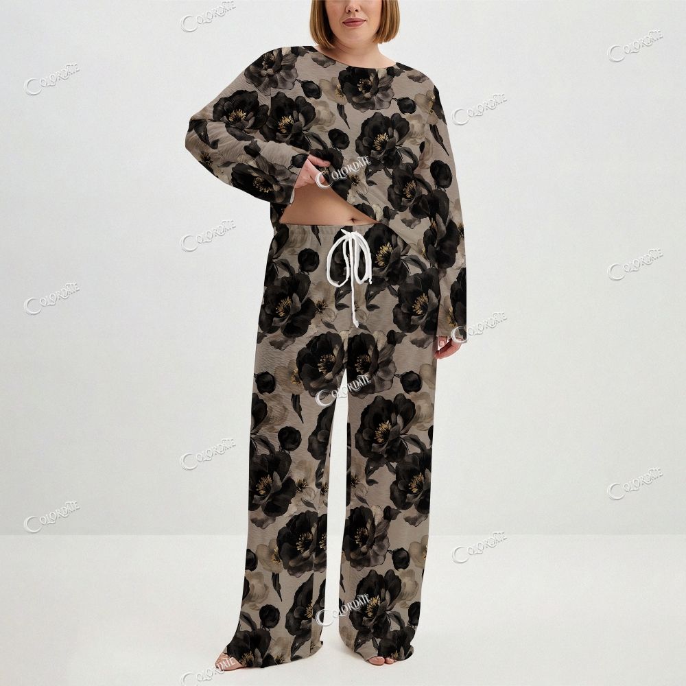 Women's Noir Peony Print Long Sleeve Cotton Homewear Set