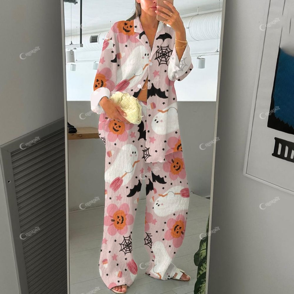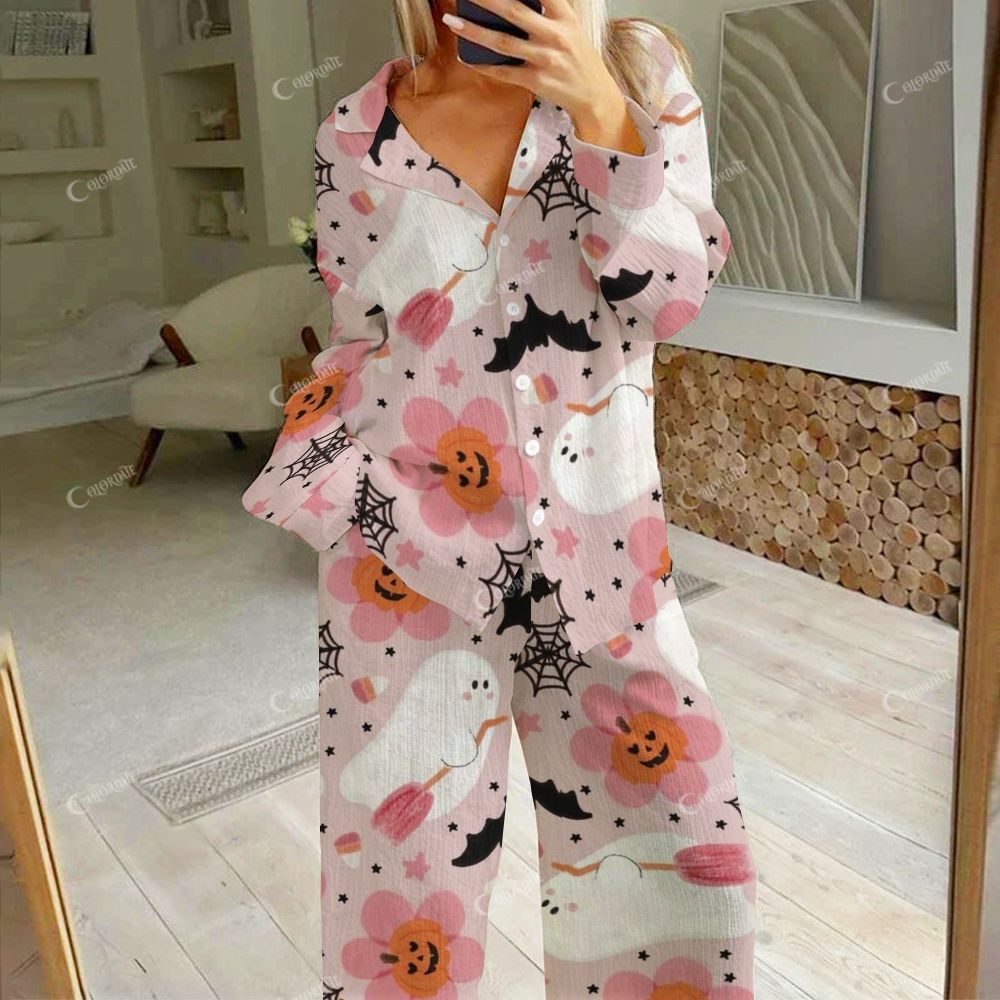 Women's Pink Floral Print Cotton Cardigan Homewear Set 2510002240