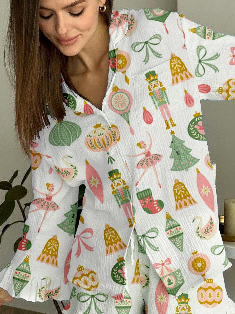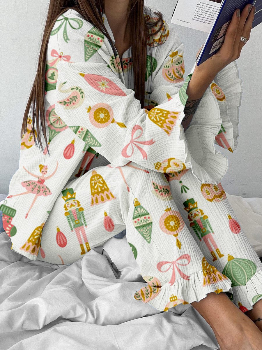 Women's Art Painting Christmas Fun Print Home Long Sleeve Suit