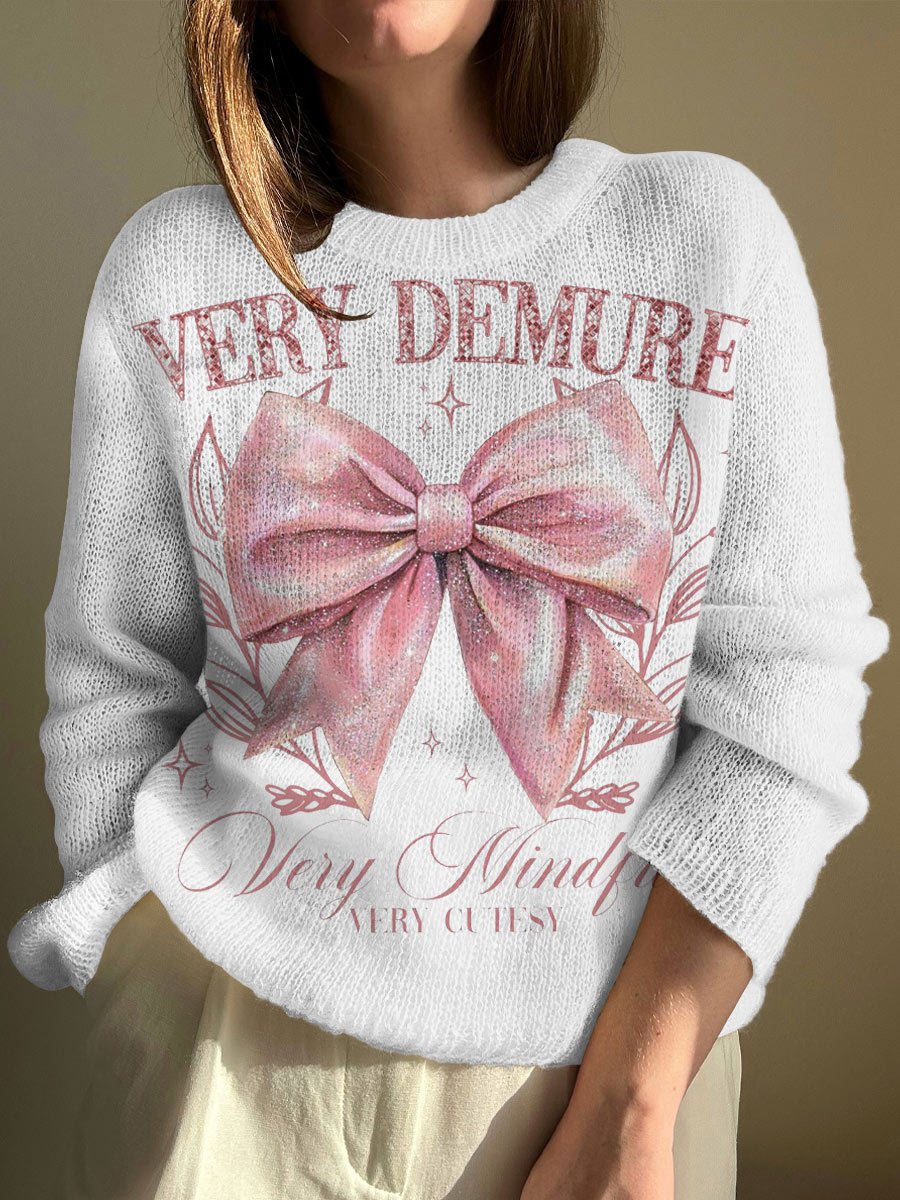 Women's Glitter Bow Long Sleeve Crewneck Sweater