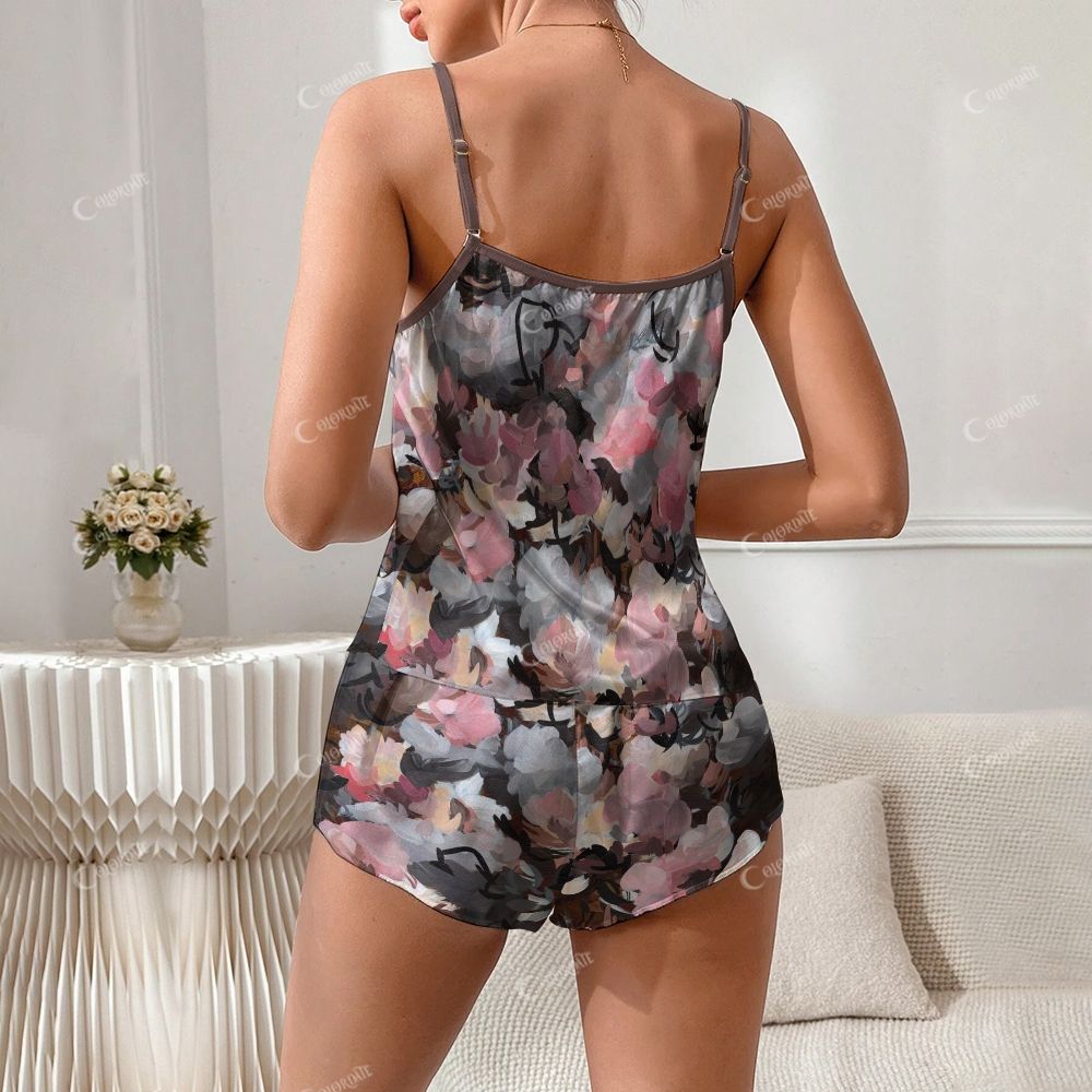 ·Suspender pajama short set, suspender round neck top, shorts bottom, fashionable and special style.