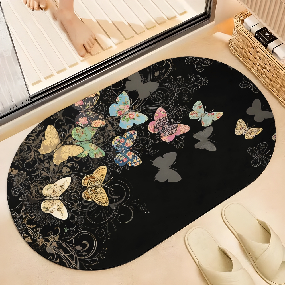 Color Butterfly Printed Bath Mat