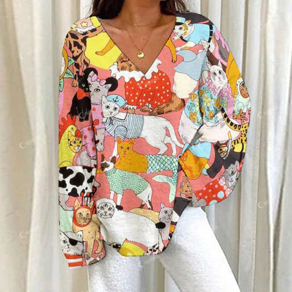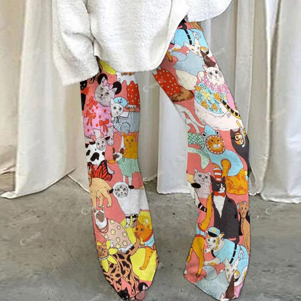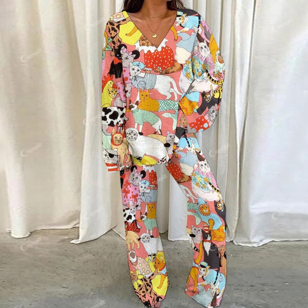 Colordate All Kinds Of Cute Kitten Prints Loungewear Set For Women