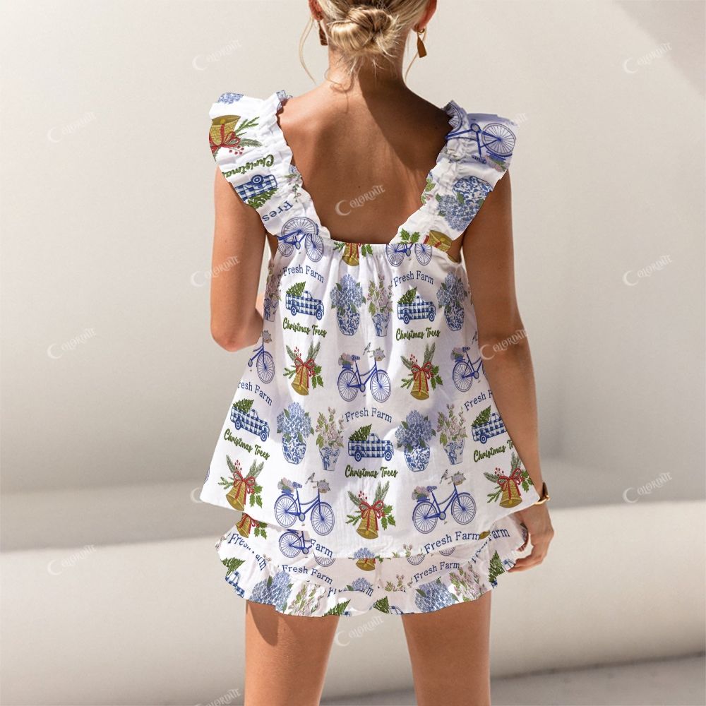 Colordate Bicycles And Floral Prints Short Tank Top Shorts Pajama Set