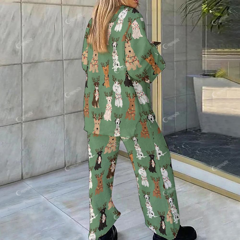 Colordate Christmas Puppy Print Loungewear Set For Women