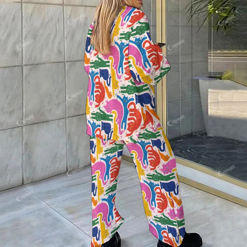 Colordate Colorful Cat Print Loungewear Set For Women