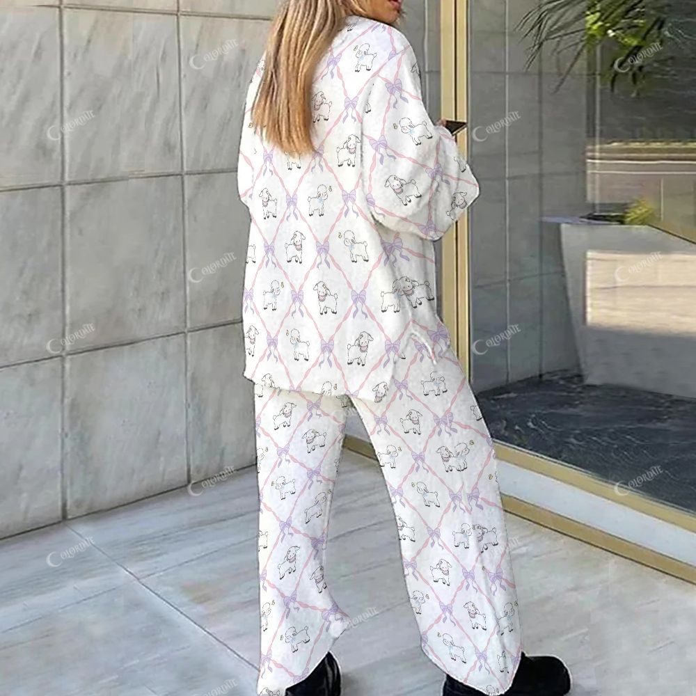 Colordate Lamb Print Loungewear Set For Women