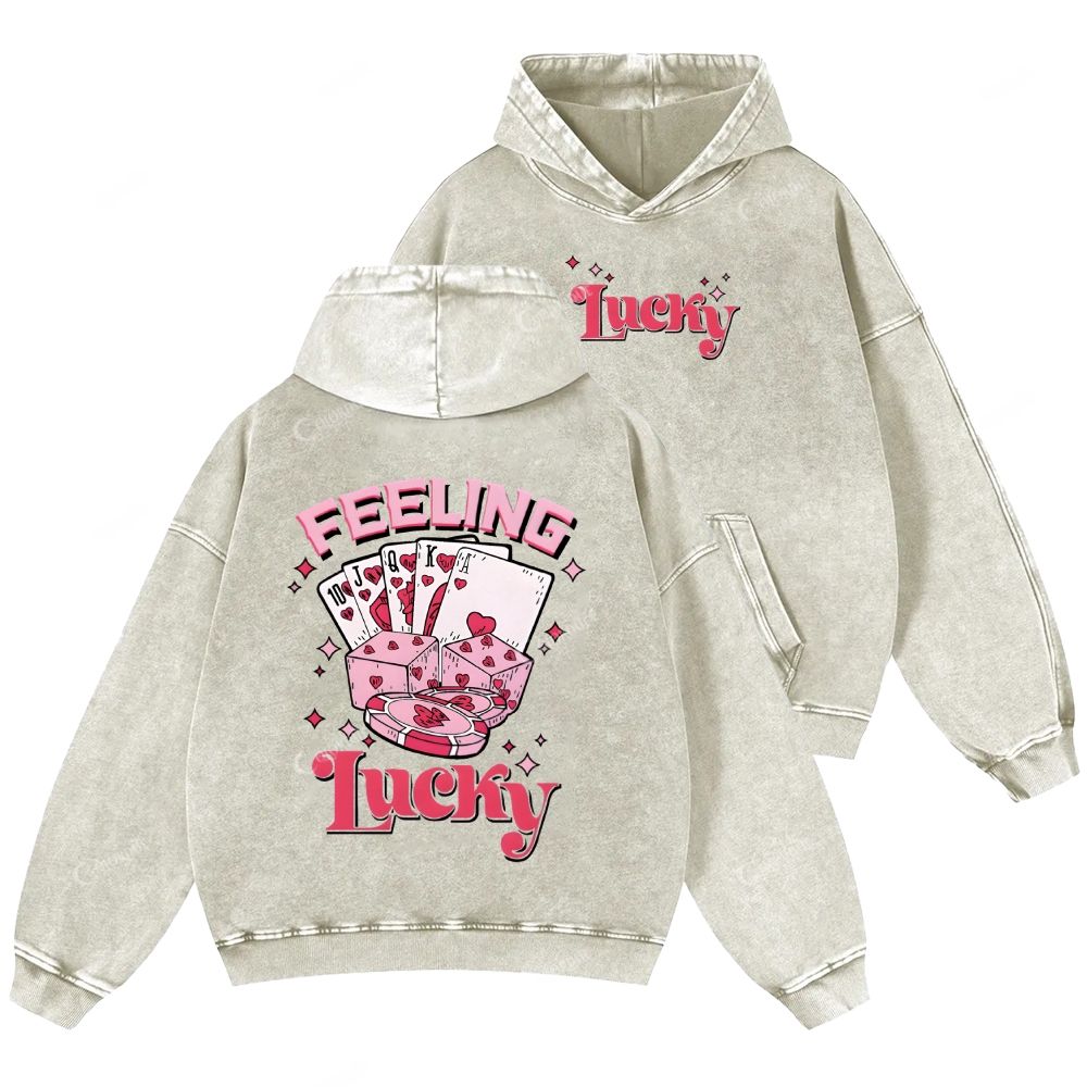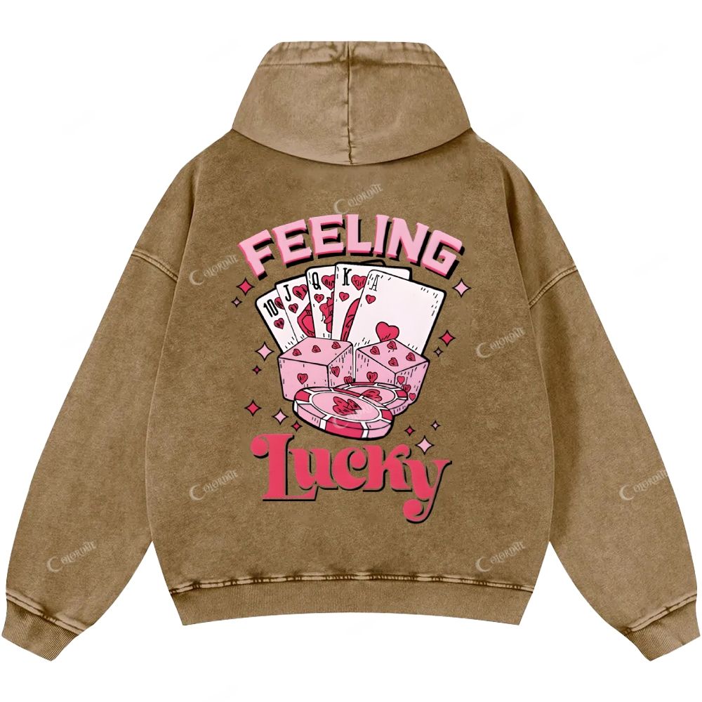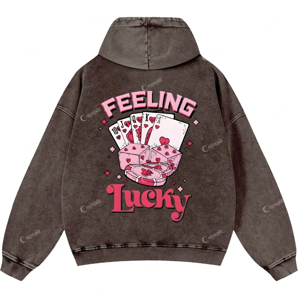 Colordate Unisex Casual Card Printed Double-sided Washed Hoodie