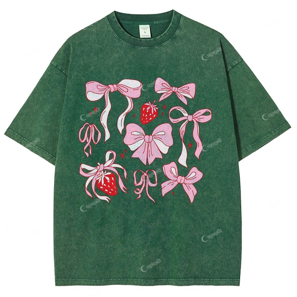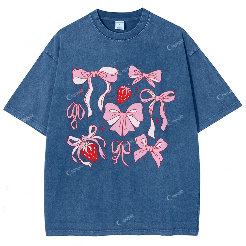 Colordate Unisex Pink Bow Printed Washed Tee