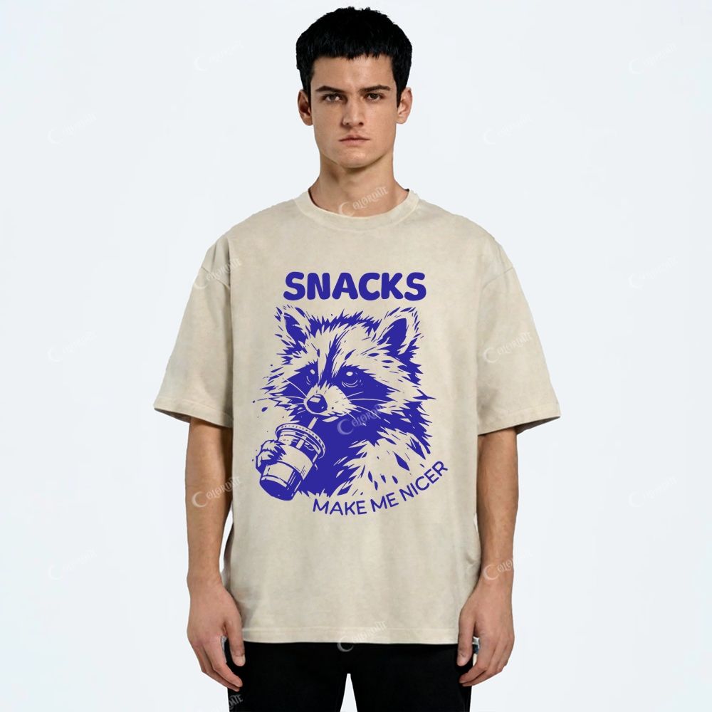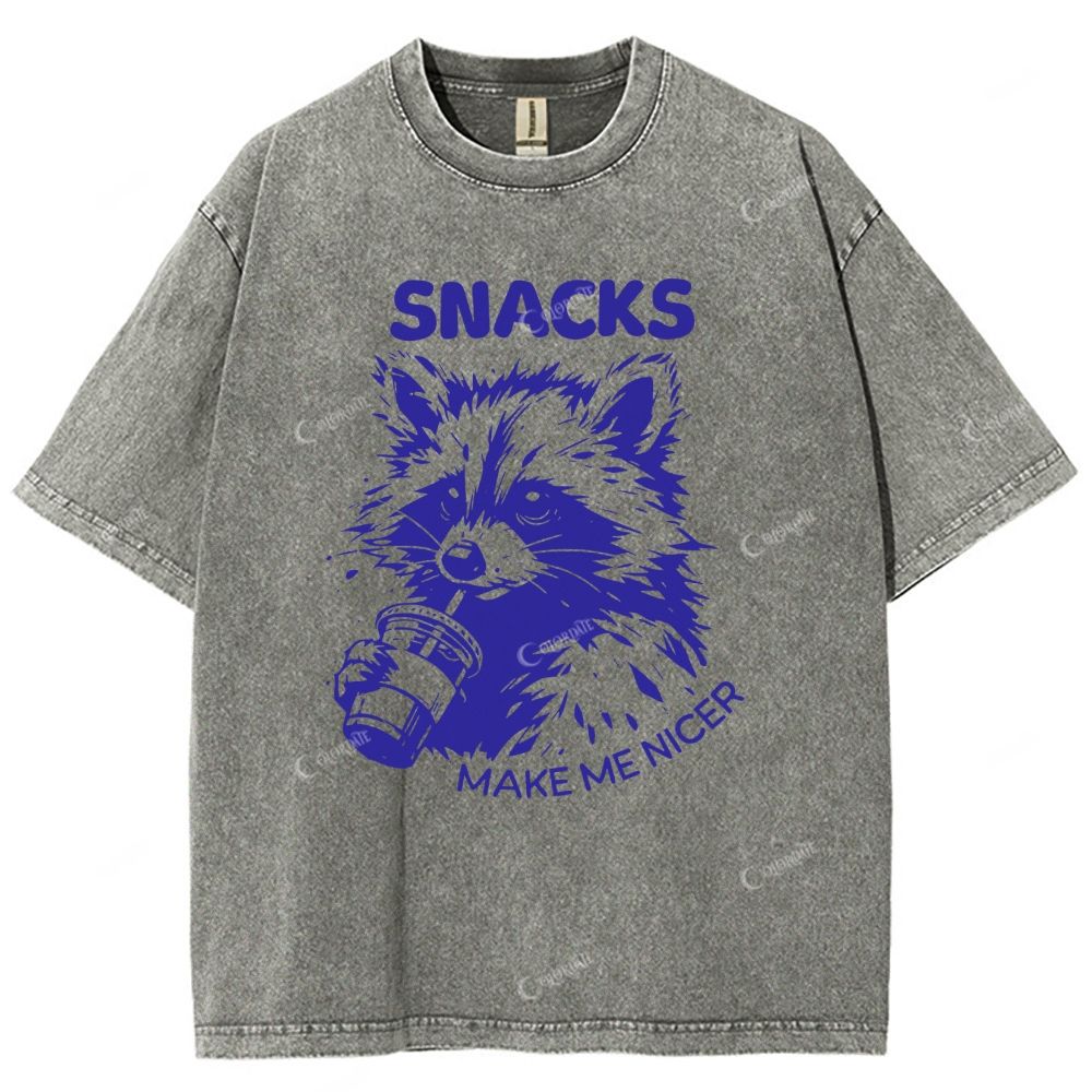 Colordate Unisex Raccoon Printed Washed Tee