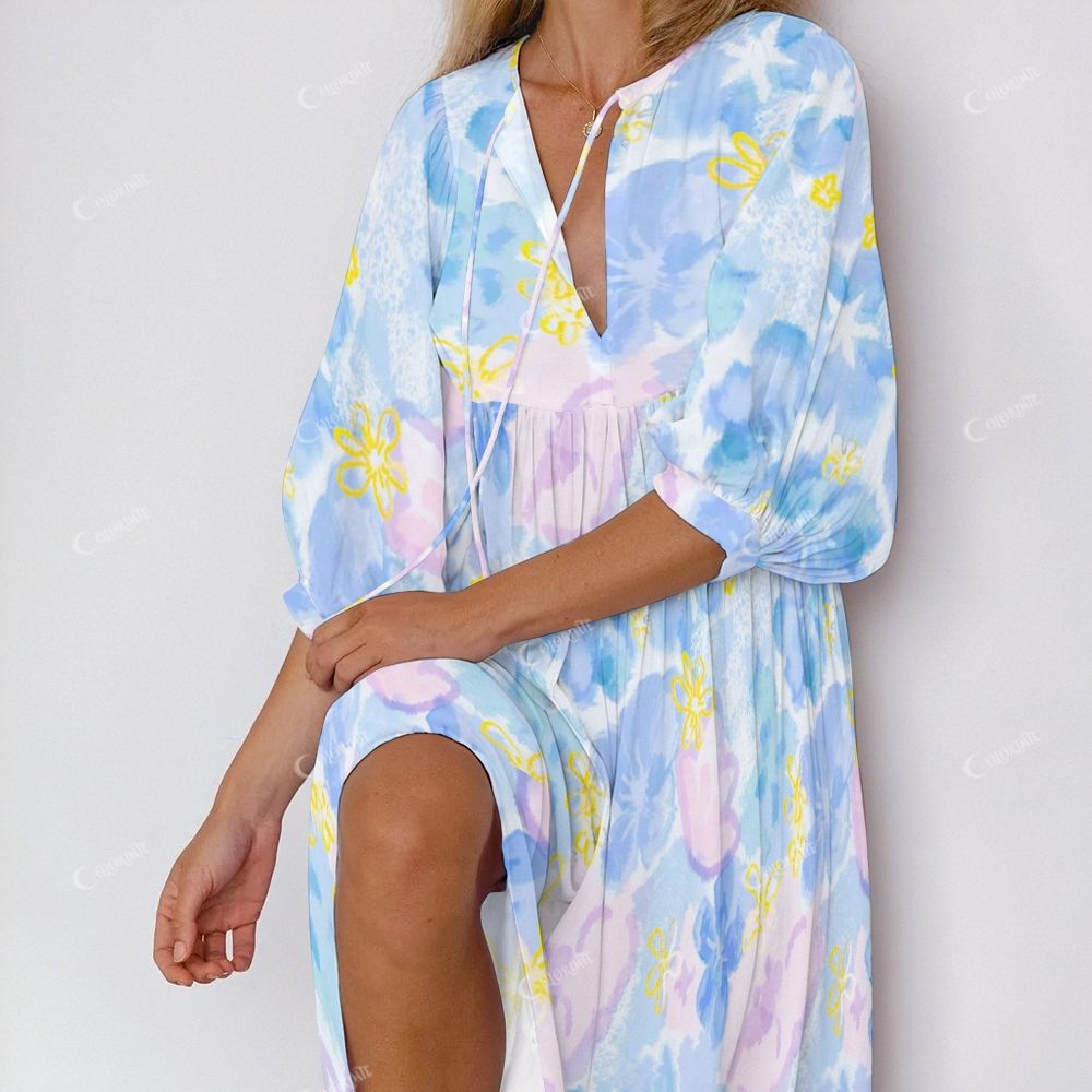 Colordate Women's Blue Dye Flowers Casual Nightdress