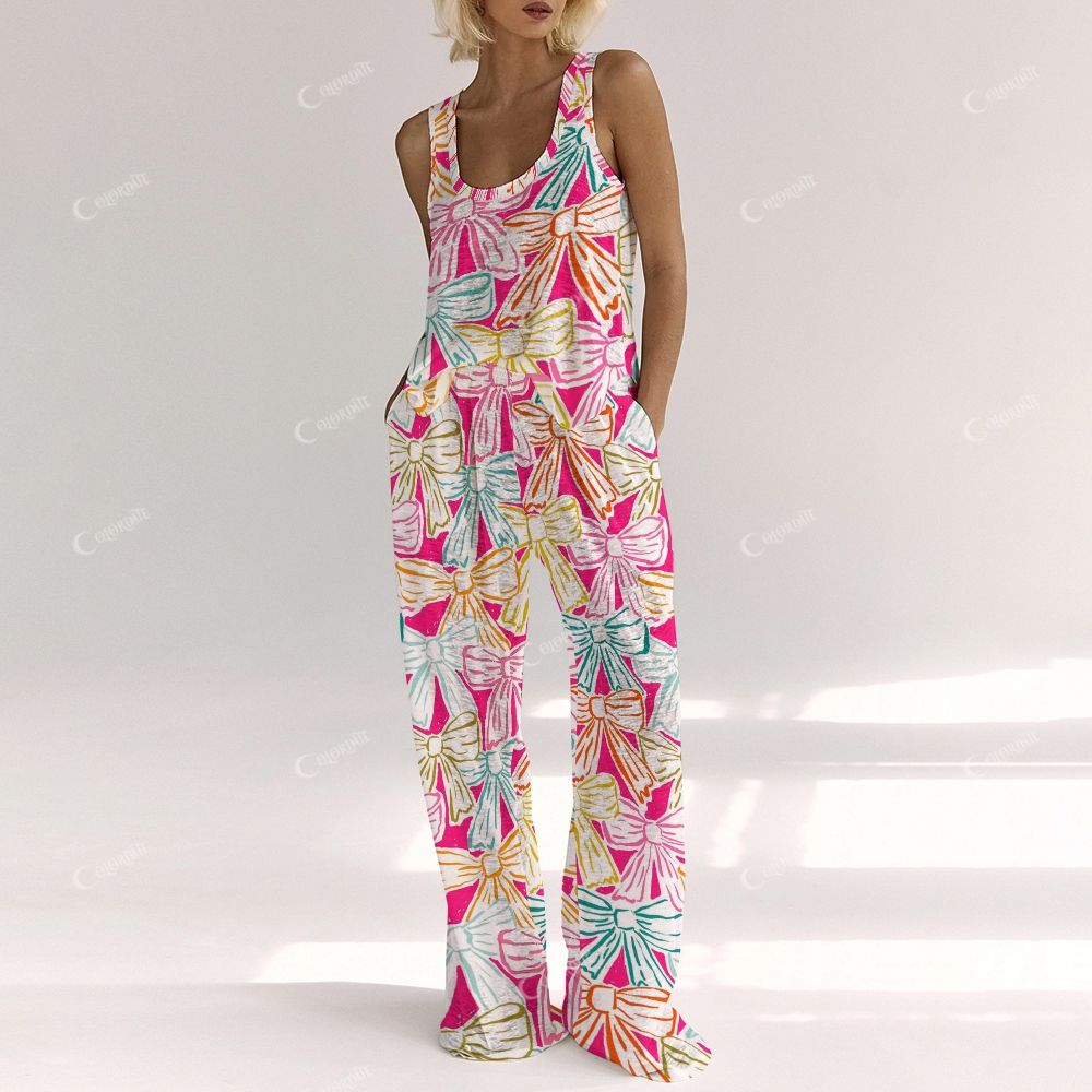 Colordate Women's Colorful Bow Print Vest and Pants Set