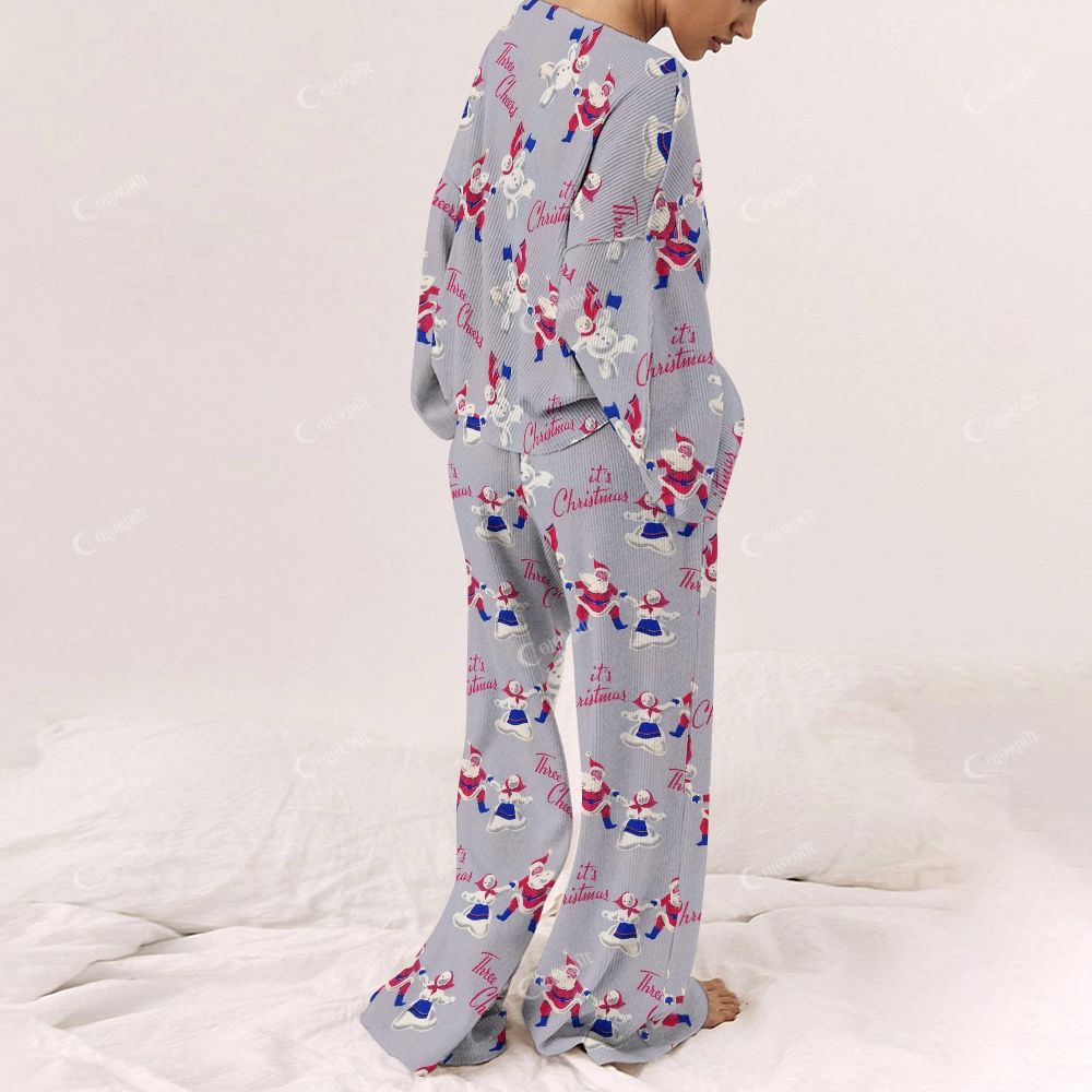 Colordate Women's Dancing Santa Claus Print Long Sleeve Pajama Set