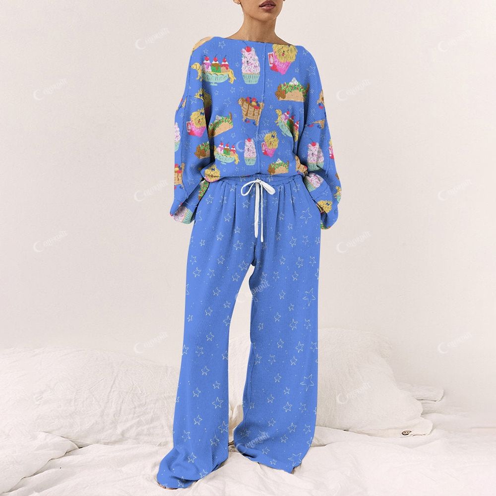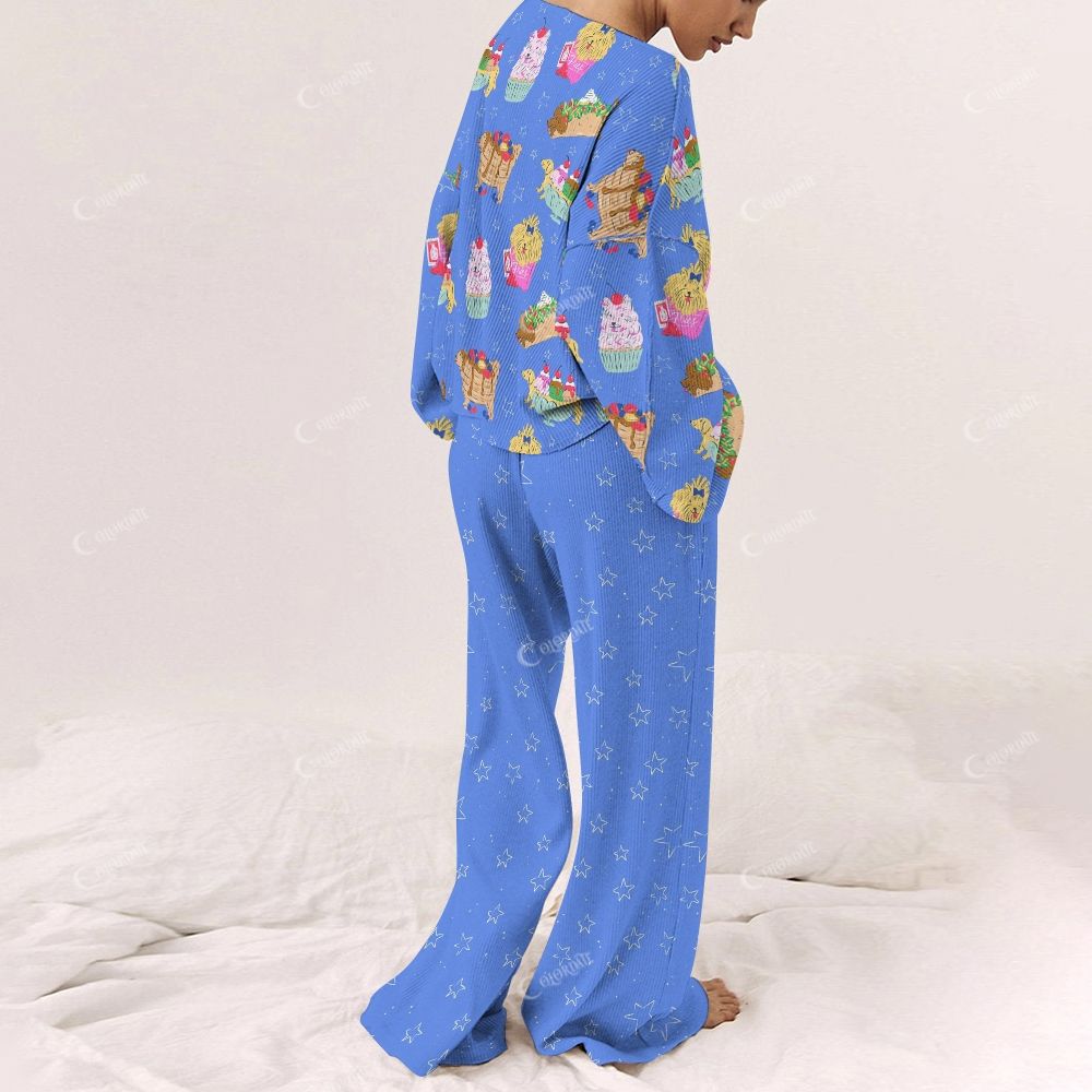 Colordate Women's Dog Dessert Print Long Sleeve Pajama Set