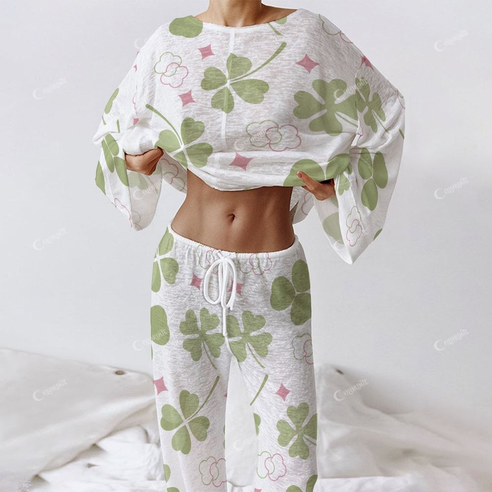Colordate Women's Four-Leaf Clover Long Sleeve Homewear Set