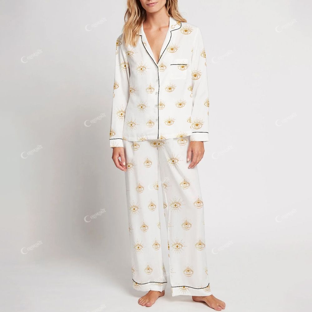 Colordate Women's Golden Eyes Print Home Long Sleeve Suit