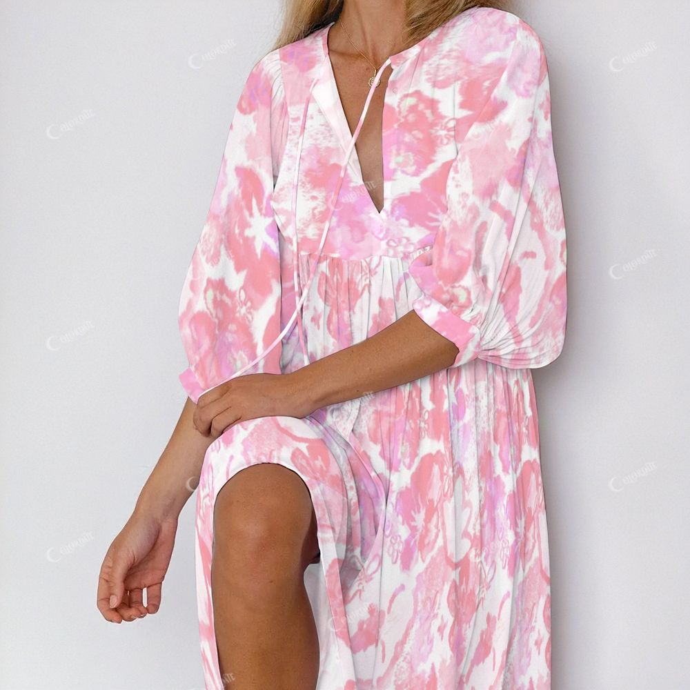 Colordate Women's Pink Colored Flowers Casual Nightdress