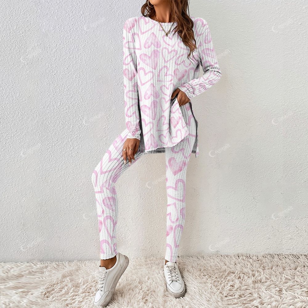 Colordate Women's Pink Heart Print Long Sleeve Suit