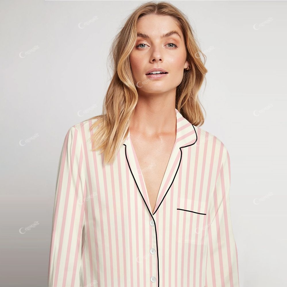 Colordate Women's Pink Stripe Print Home Long Sleeve Suit