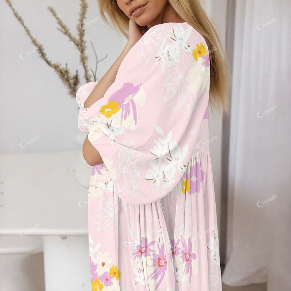 Colordate Women's Purple And Yellow Flowers Casual Nightdress
