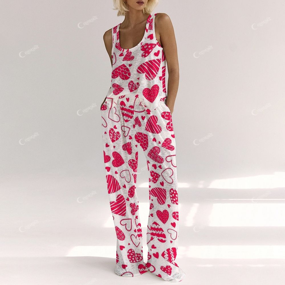 Colordate Women's Red Heart Print Vest and Pants Set