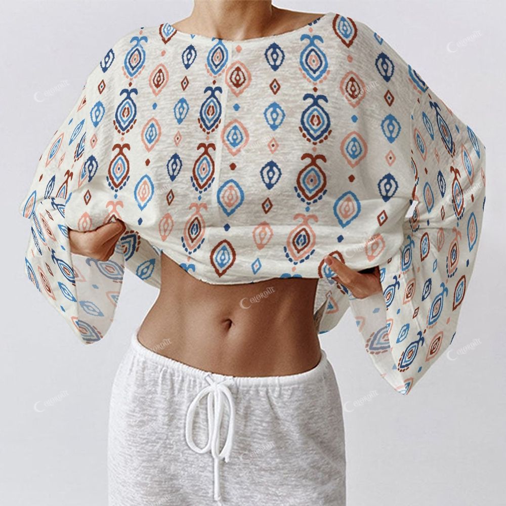 Colordate Women's Rhombic Pattern Print Long Sleeve Cotton Homewear Set