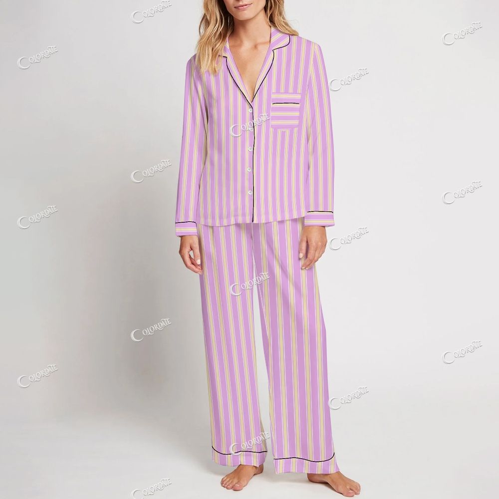 Colordate Women's Striped Print Home Long Sleeve Suit