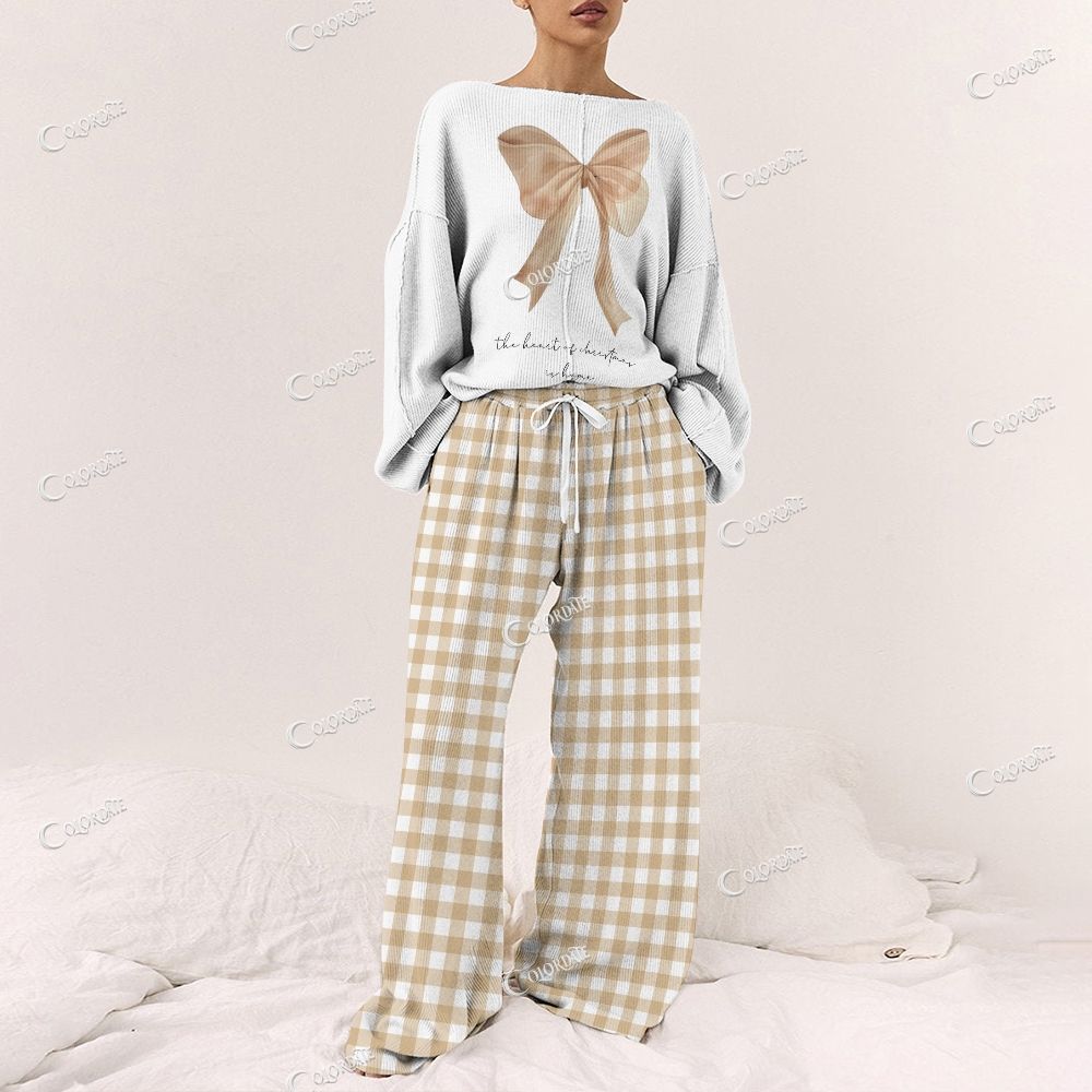 Colordate Women's The Core Of Christmas Is Home Letter Print Long Sleeve Pajama Set