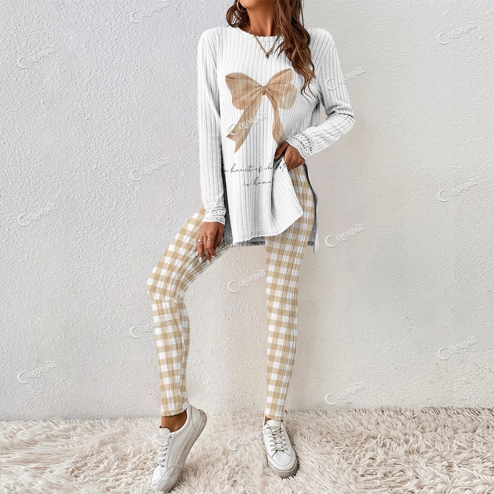 Colordate Women's The Core Of Christmas Is Home Letter Print Long Sleeve Suit