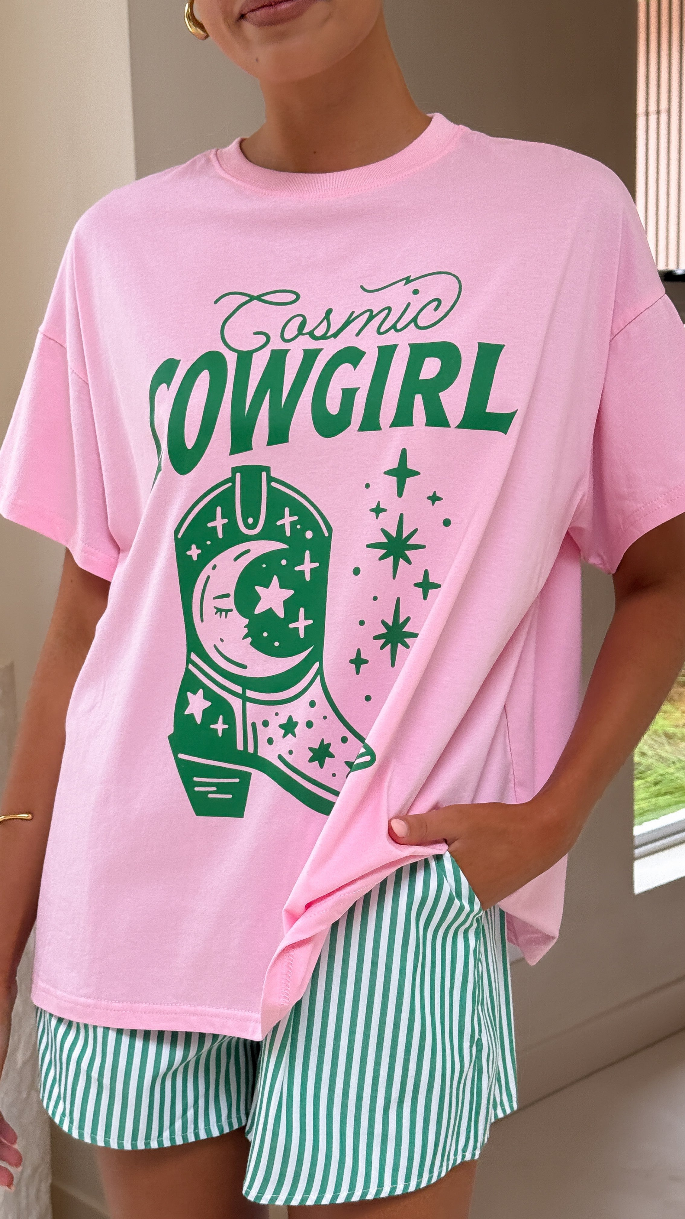 Cosmic Cowgirl Top and Shorts Set - Pink/Green