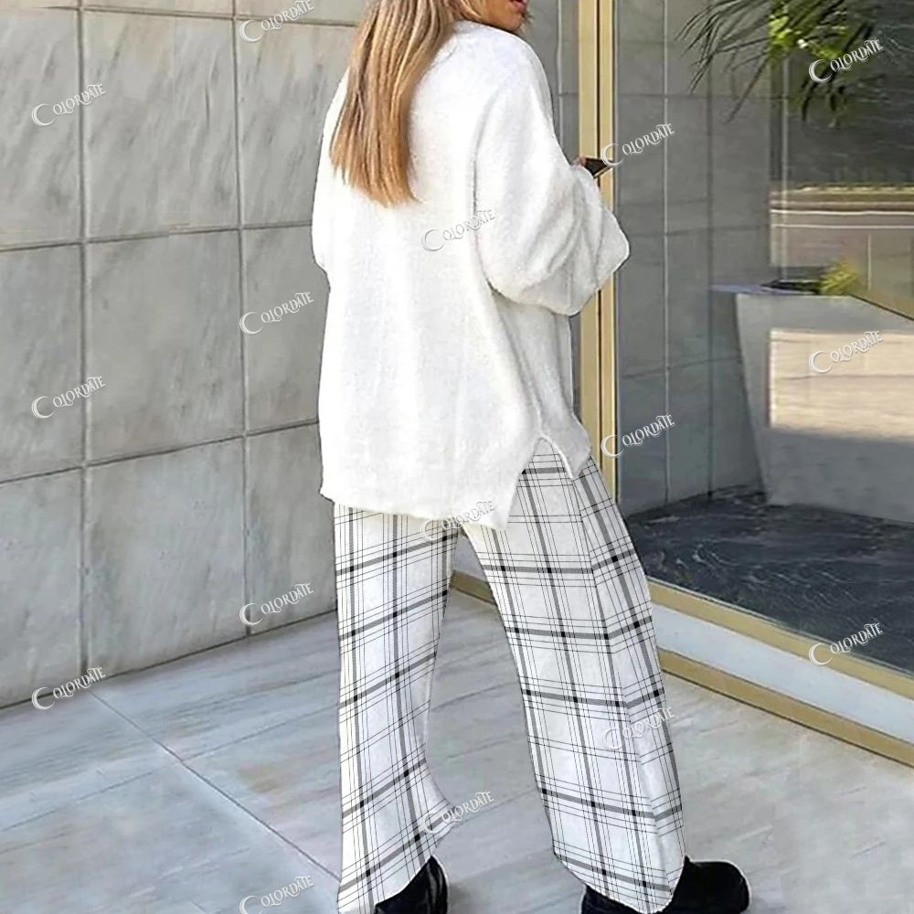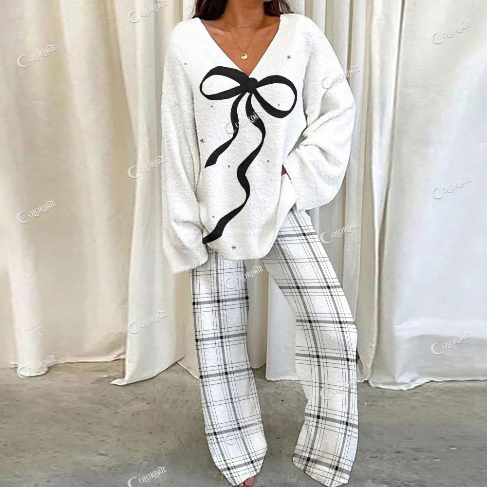 Loungewear Simple Plaid Bow Set For Women