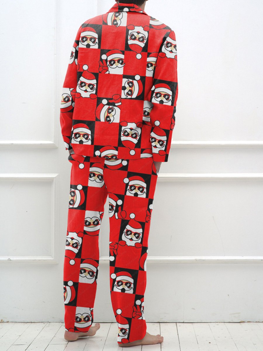 Men's Red Christmas Fun Printed Home Long Sleeve Suit