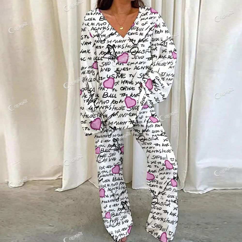 Pink Heart Secret Print Loungewear Set For Women