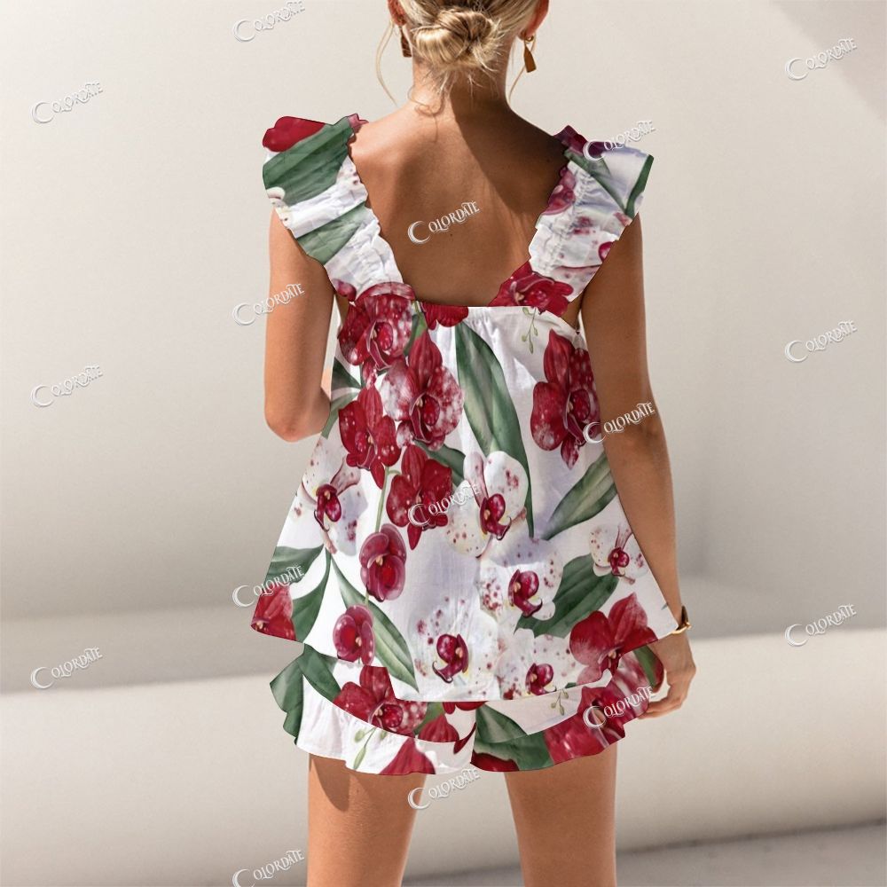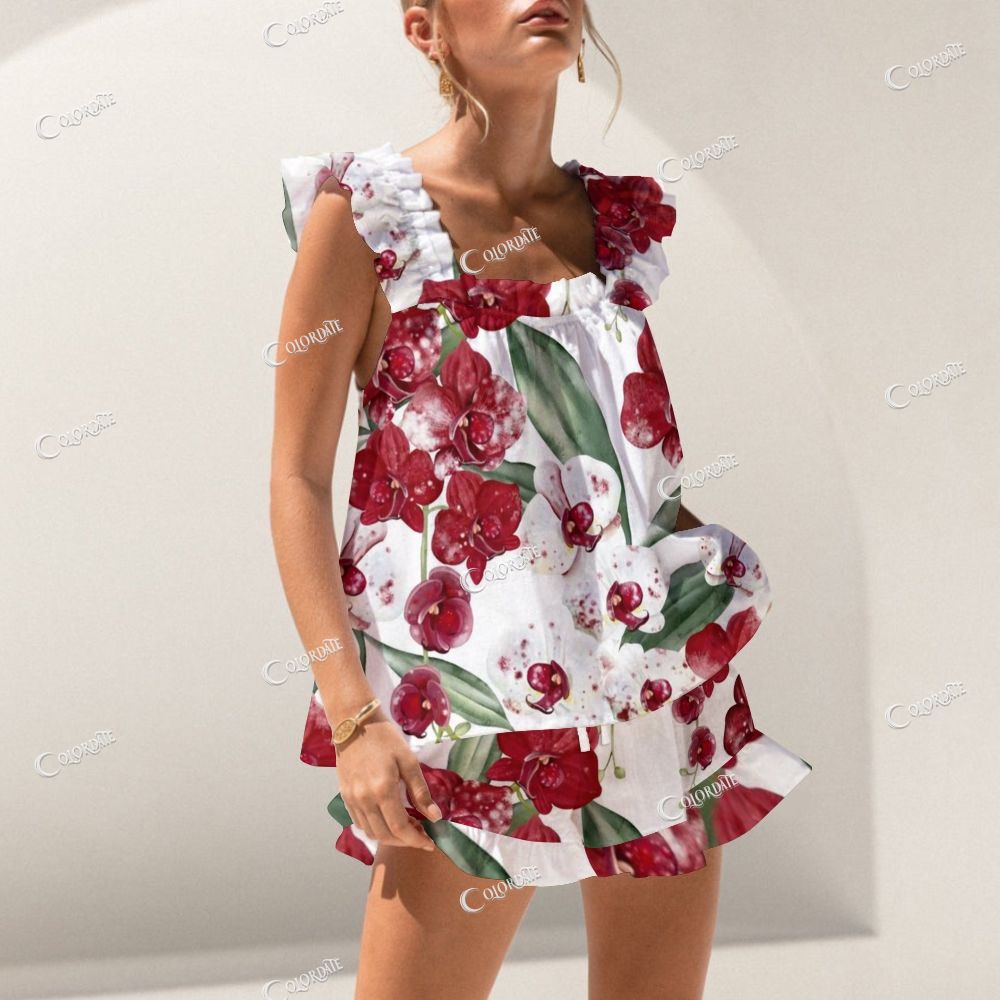 Red Peony Short Tank Top Shorts Pajama Set