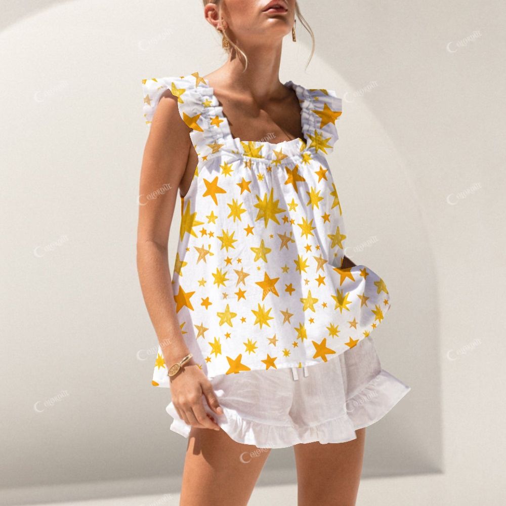 Short Tank Beautiful Hand Drawn Stars Top Shorts Pajama Set