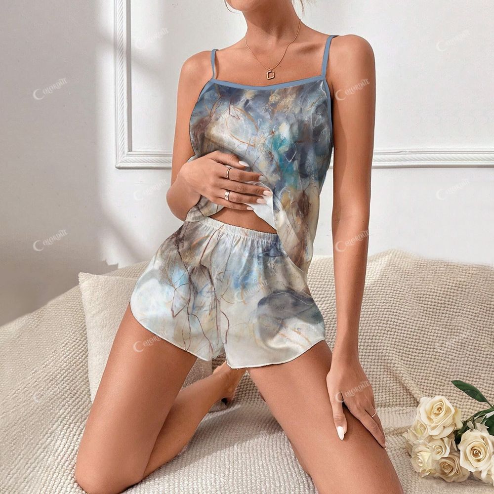 This cute animal graffiti print suspender short pajama set is designed for your comfortable sleep, allowing you to enjoy low-key elegance. This pajama set has simple lines and a timeless silhouette, exuding relaxed charm and can be matched with any style. The fabric is breathable and cool, so you can sleep well when you put it on.