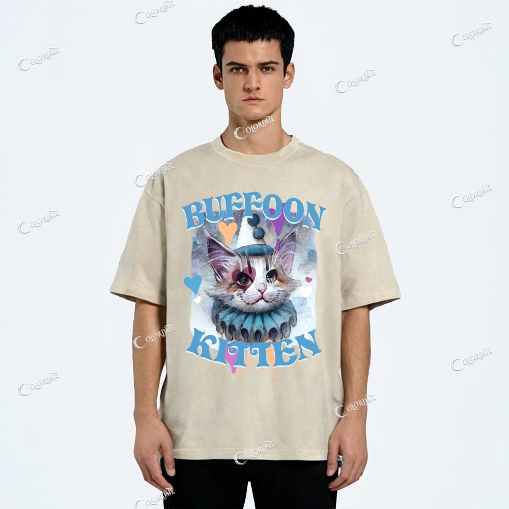 Unisex Clown Cat Printed Washed Tee