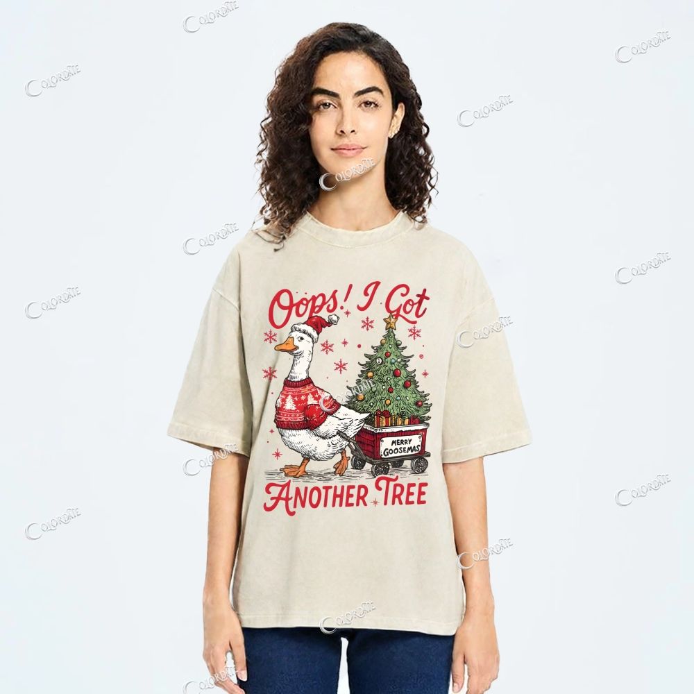 Unisex Goose And Christmas Tree Printed Washed Tee