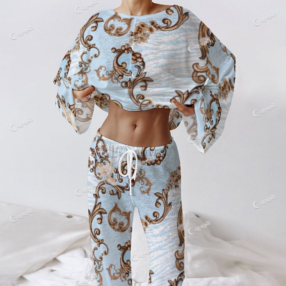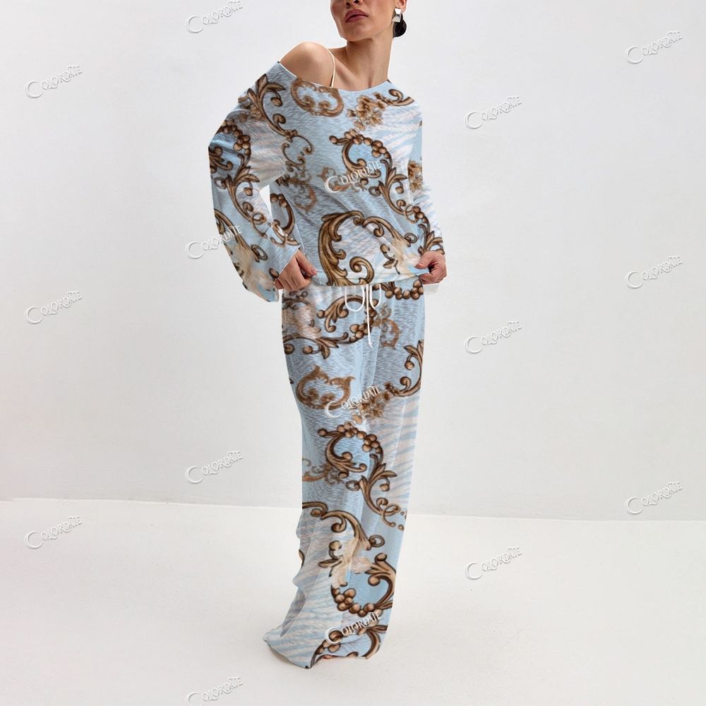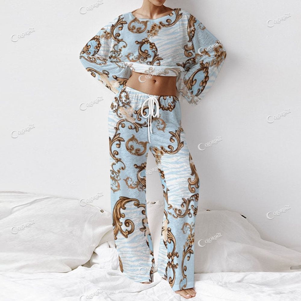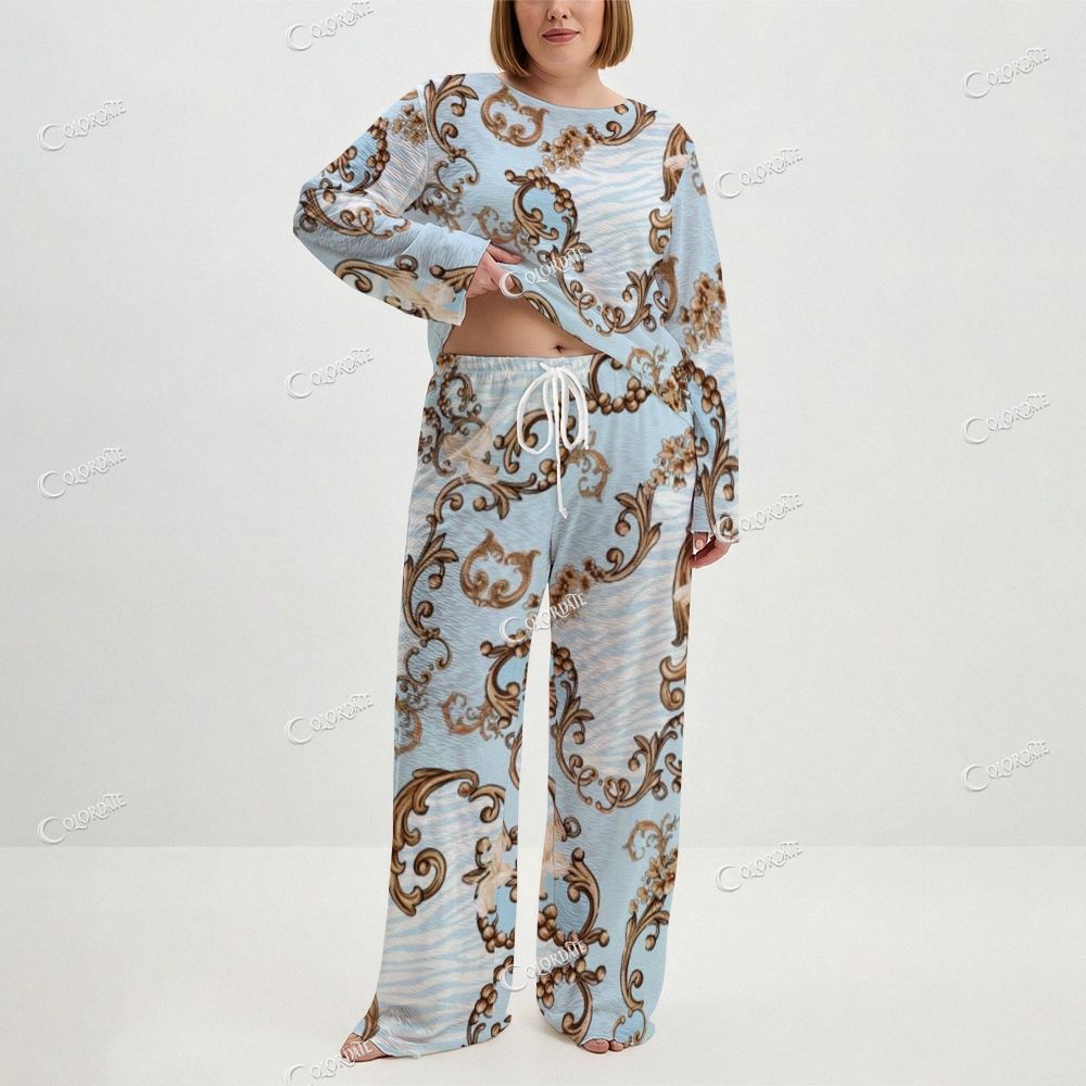 Women's Antique Damask Print Long Sleeve Cotton Homewear Set