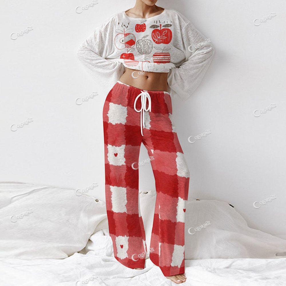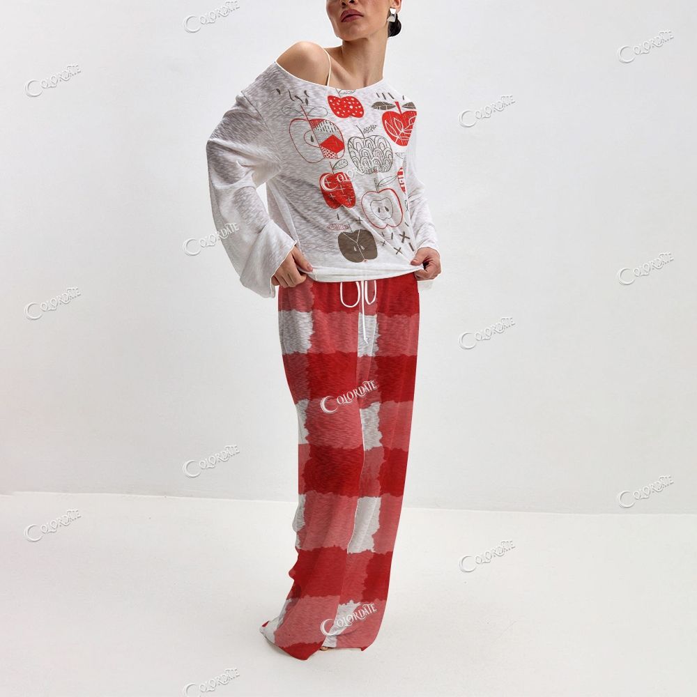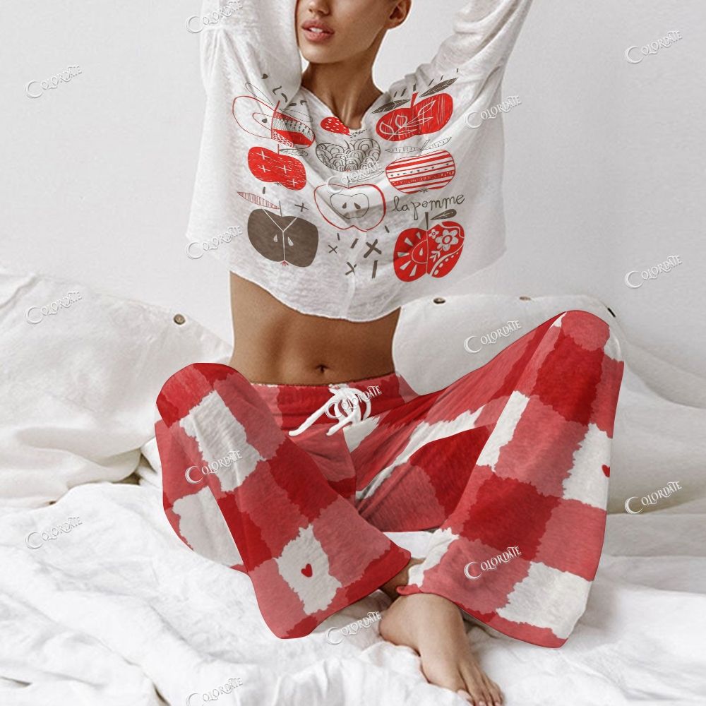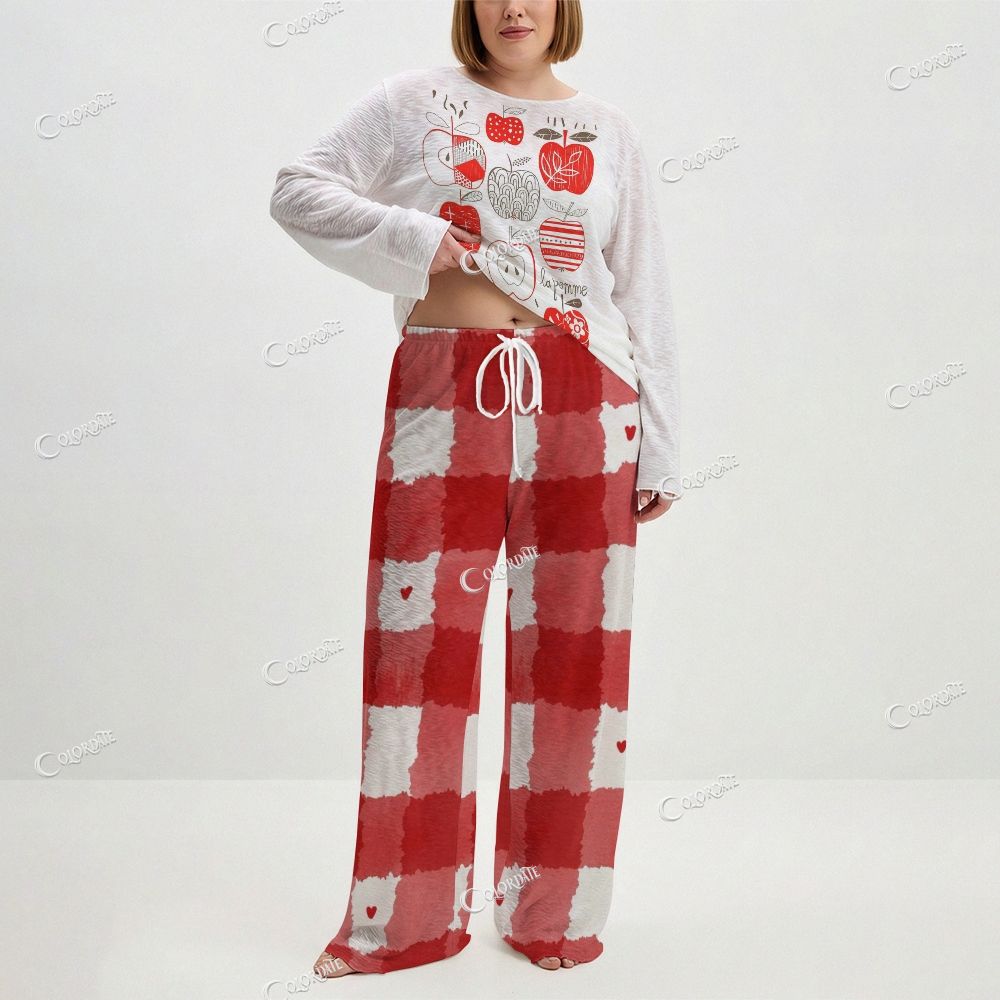 Women's Apple & Red-White Checkered Print Long Sleeve Cotton Homewear Set
