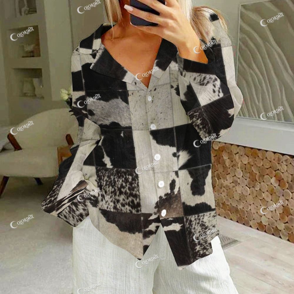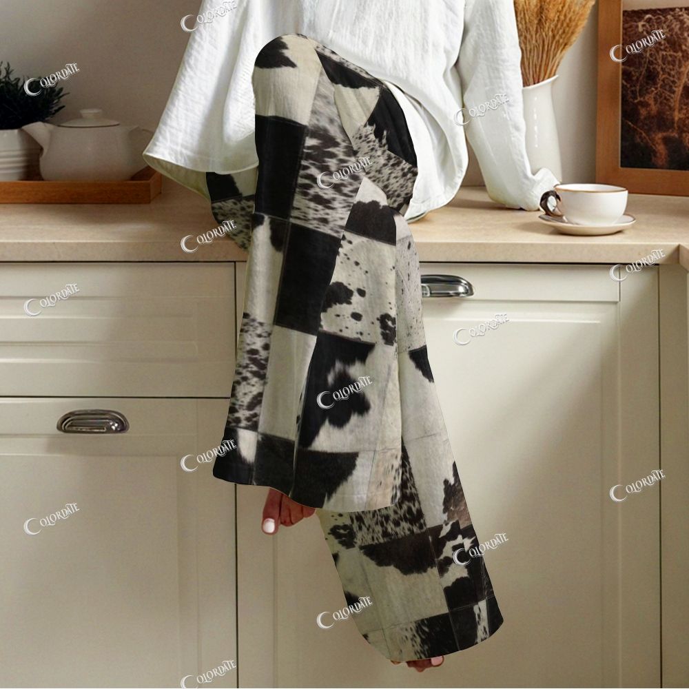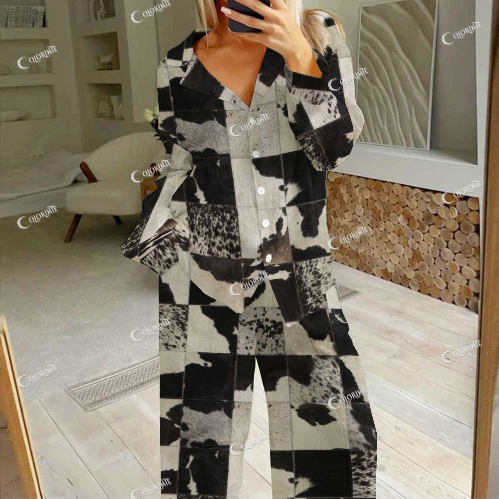 Women's Black & White Abstract Cow Print Cotton Cardigan Homewear Set