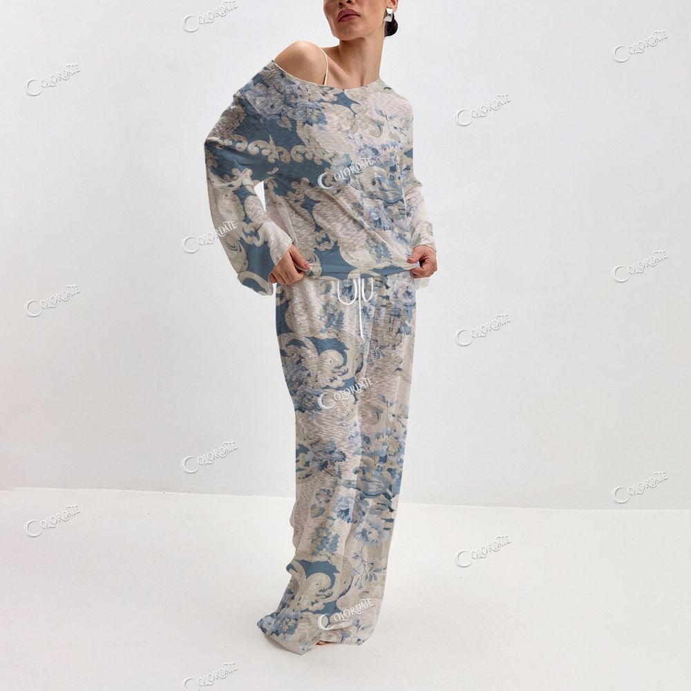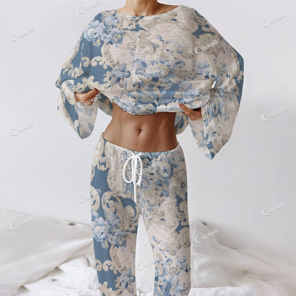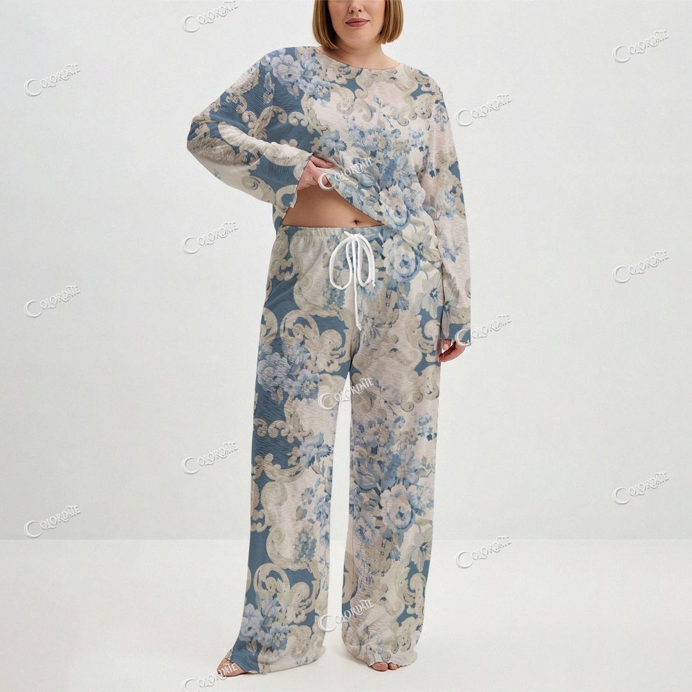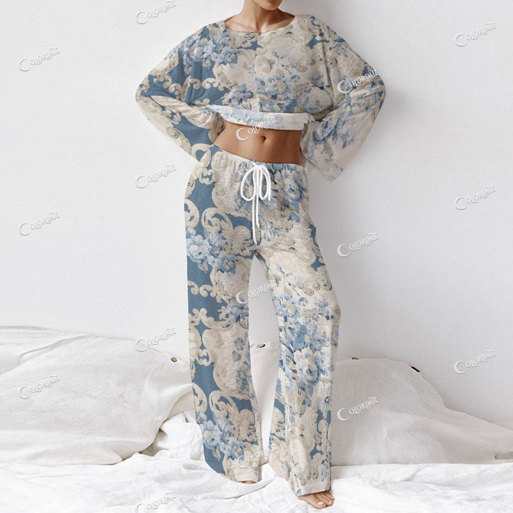 Women's Blue Floral Print Long Sleeve Cotton Homewear Set
