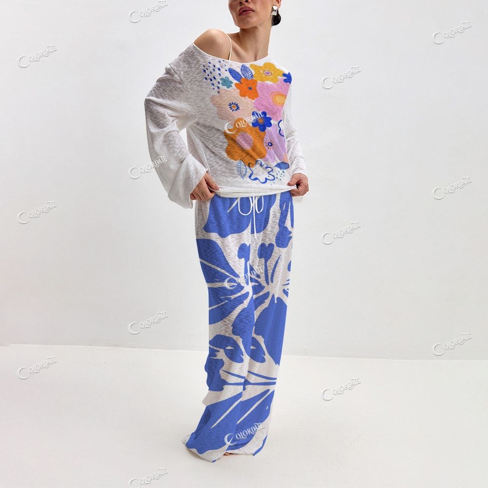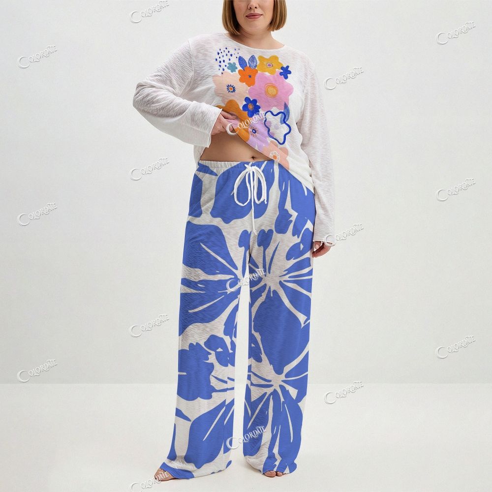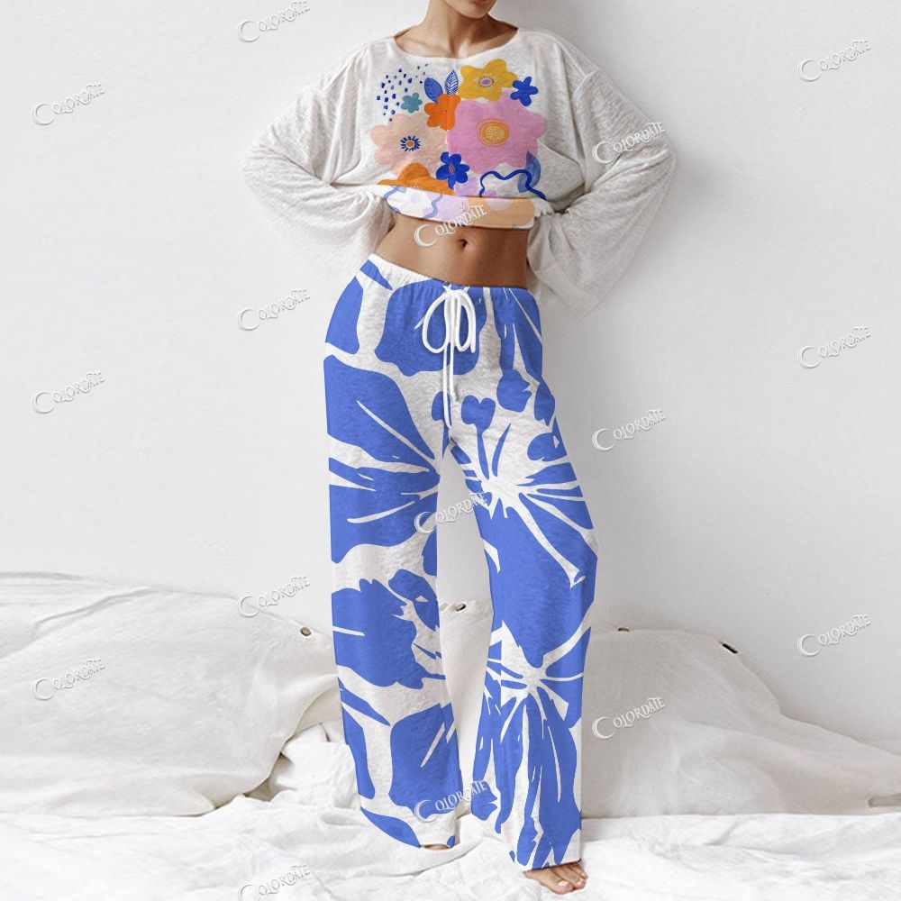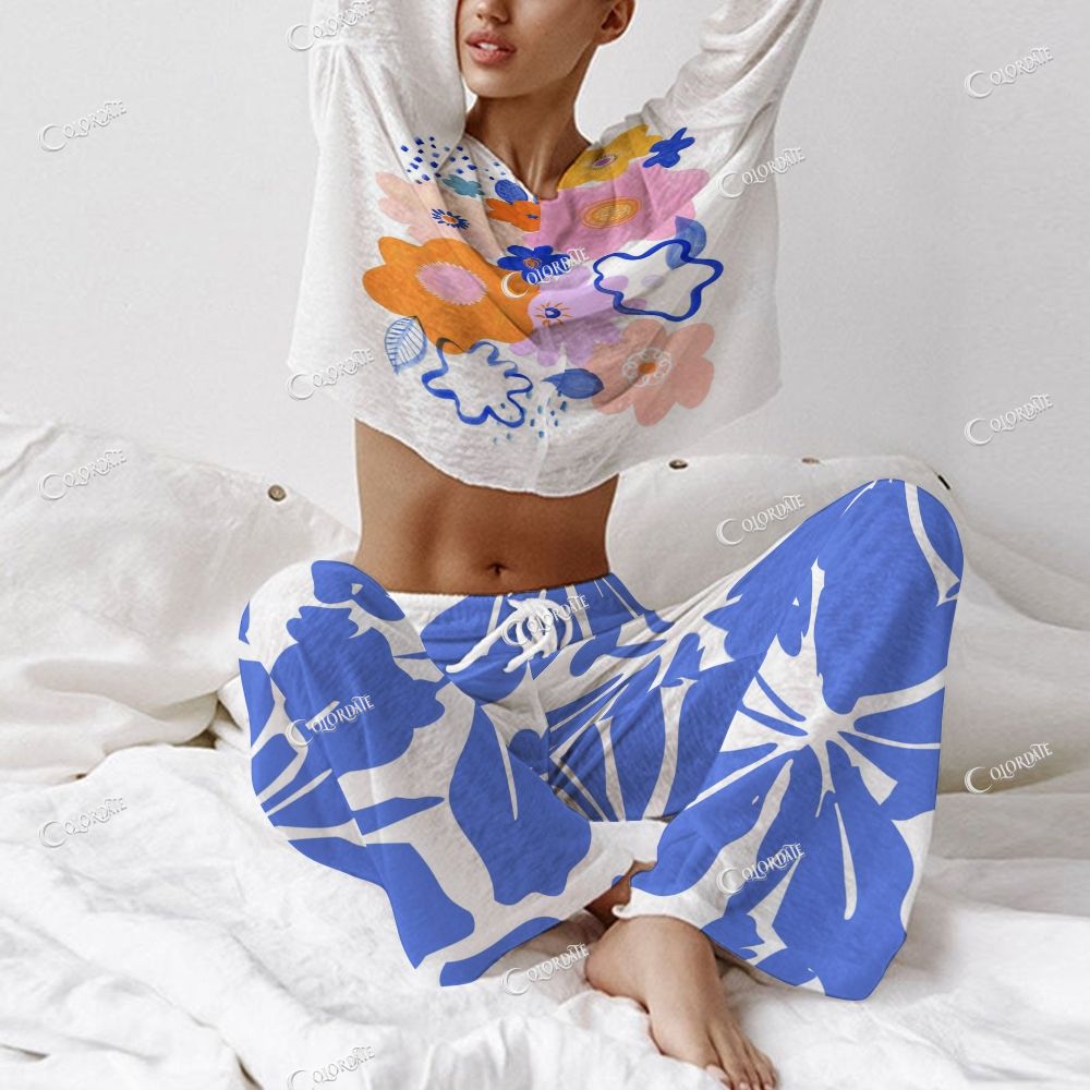 Women's Bold Blue & White Floral Long Sleeve Cotton Homewear Set